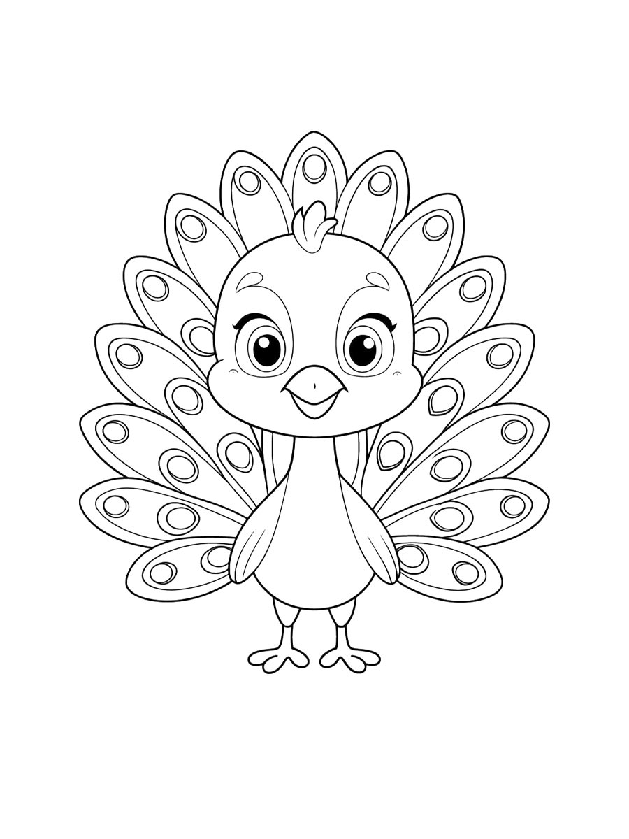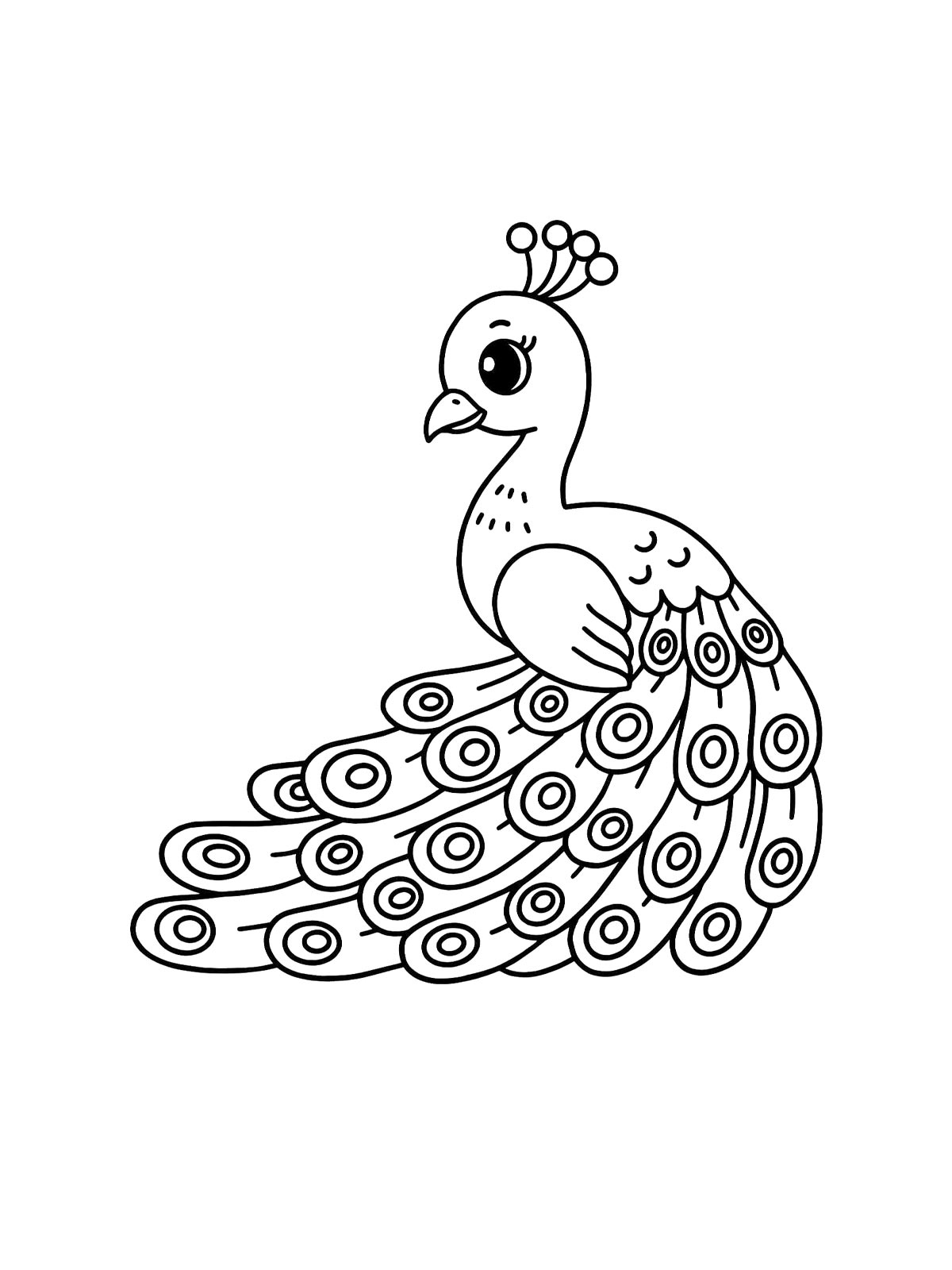 Our peacock coloring pages let children explore one of the most dazzling birds in the world. Everyone knows the peacock for its huge, fan-shaped tail covered in eye-catching patterns. While the females are usually brown or gray, the males shine with brilliant shades of green, blue, orange, and even lavender. Each bird looks unique, and the patterns on their tails can be endlessly creative. Kids can try realistic colors or invent their own magical combinations using crayons, markers, or paints. All pages are ready to print or download for free in a handy A4 format.
